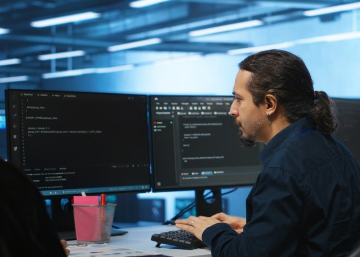 Desenvolva a lógica e a infraestrutura que sustentam as aplicações. Gerencie bancos de dados, servidores e APIs, garantindo que o sistema funcione com segurança e eficiência.